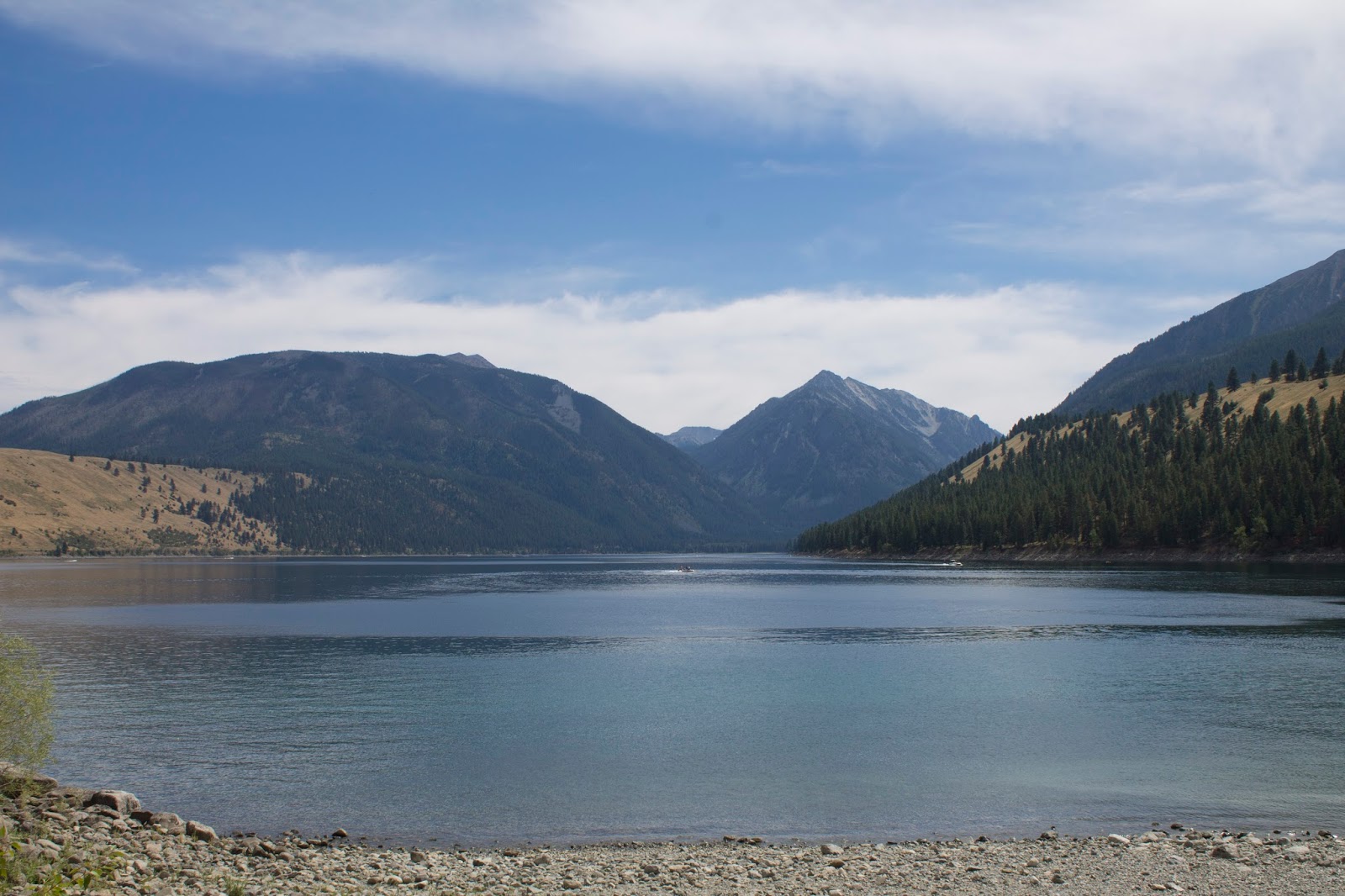 We took in the view for a while, but there wasn't much to hike and we were eager to get back down the road before more people started driving up. There was a campsite up here, an idea for the future. This would be one hell of a place to watch a sunrise/sunset. On our way down we encountered no cows and only passed one car. We had to stop and park several times to let the brakes cool. When we got back to Imnaha we had a choice to make. Take the somewhat sketchy forest road shortcut up to Zumwalt Prairie and the Buckhorn viewpoint? Go back to Joseph, then take the longer, better road up to Buckhorn (Still 30 miles of gravel)? Skip Buckhorn, drive south to the Hells Canyon overlook below Joseph? Or just stay in Joseph and chill out? Well, we decided to chill in Joseph. Last year we'd spent so much time driving on the coast, and we didn't want to do it again. I actually kind of like driving long distances to see things, but it had taken us all morning to see Hat Point and most of it was driving. We had a big backpack ahead of us, I figured we should rest up and relax before it hit.